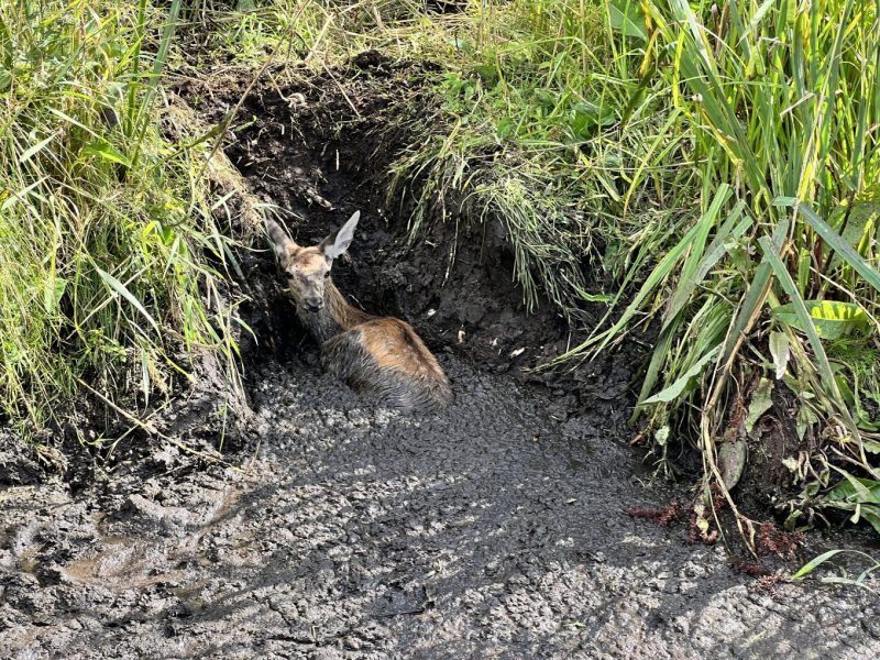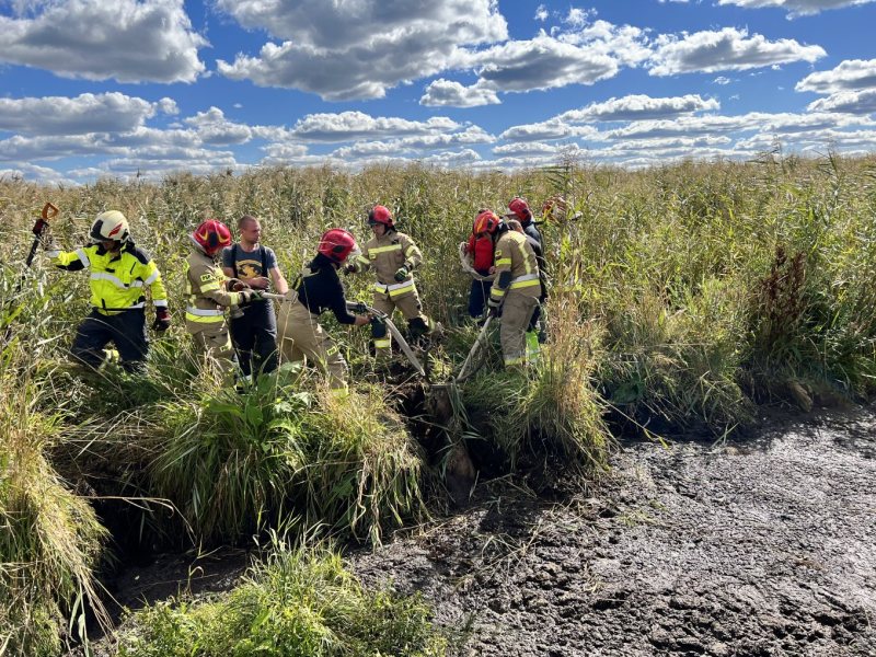 Dramat, tym razem z happy endem – tak najkrócej można podsumować akcję ratunkową, którą we wtorek przeprowadzili rolnicy, myśliwi i strażacy na polu w okolicy Jurg i Dźwiersztyn. Do rowu melioracyjnego wypełnionego mułem/szlamem wpadły cielak i byk jelenia. Zwierzęta zapewne wiele godzin desperacko walczyły o życie. Niestety, nie były w stanie samodzielnie się wydostać ze śmiertelnej pułapki. - Gdy dojechaliśmy na miejsce akcji w oczach zwierząt było widać błaganie o pomoc – mówią strażacy. - Nie były nerwowe, raczej zrezygnowane, z resztką nadziei czekały po prostu na ratunek...