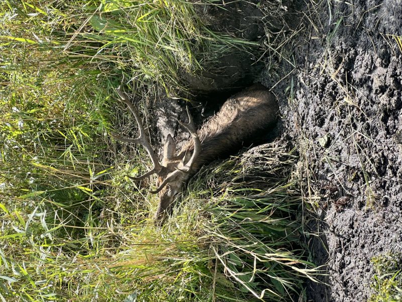 - Cielak ma jakieś 25 kg, urodził się zapewne w czerwcu – mówi Reinhard Brzóska, myśliwy, który na miejsce przyjechał z synem Danielem. - Byk ma około 120 może 150 kg. Myślę, że ma jakieś cztery lata. Pewnie przechodziły tu do wody lub na żerowisko. Wody nie było, został muł, przy przeprawie wpadły i ugrzęzły. Takie miejsca to śmiertelne pułapki dla każdego. Kto wie, ile tam na dnie leży zwierząt. Gdyby nie pan Mateusz, jelenie pewnie by zdechły. Bo kto by je tu znalazł?