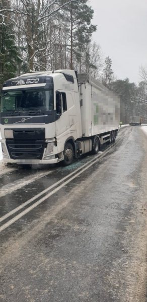 - Auta jechały w przeciwnych kierunkach – mówi sierżant Stafaniak. - Daf od strony Jedwabna. W trakcie wymijania naczepa z samochodu daf zsunęła się na pas, którym jechało volvo. Zahaczyła o ten pojazd i go uszkodziła.