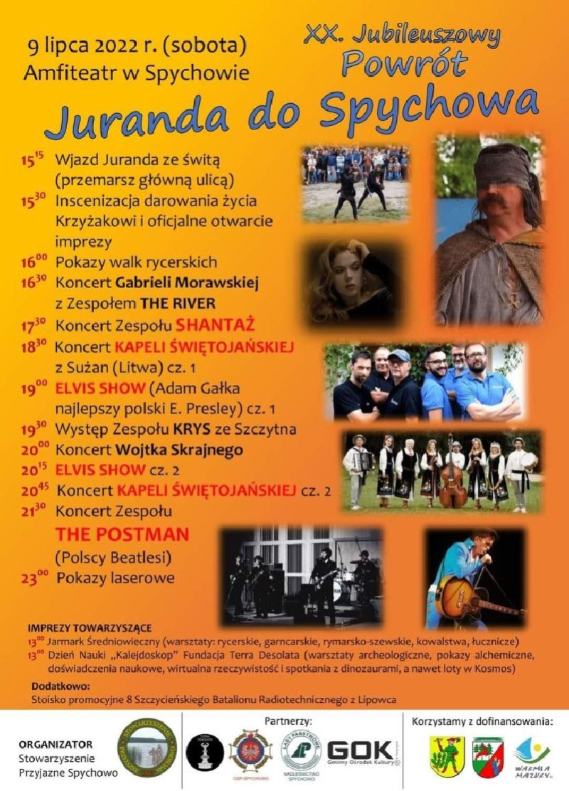 Jak co roku w sobotę, 9 lipca Jurand powraca do Spychowa dzięki Stowarzyszenie „Przyjazne Spychowo”. Tym razem będzie to już dwudziesta edycja tego wydarzenia. Nie zabraknie jubileuszowych niespodzianek.