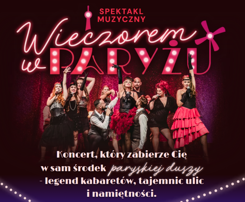 Już 17 kwietnia 2026 roku scena Miejskiego Domu Kultury w Szczytnie zamieni się w rozświetlony nocą Paryż. Tego wieczoru publiczność będzie mogła przenieść się w sam środek paryskiej nocy – pełnej muzyki, emocji, tańca i niezapomnianych historii.