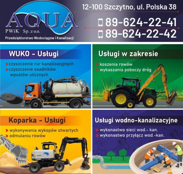 Mieszkańcy powiatu szczycieńskiego mają powód do zadowolenia – Przedsiębiorstwo Wodociągów i Kanalizacji „AQUA” Sp. z o.o. oferuje najniższe ceny usług w regionie, a zakres ich działalności nie ogranicza się tylko do miasta Szczytno.