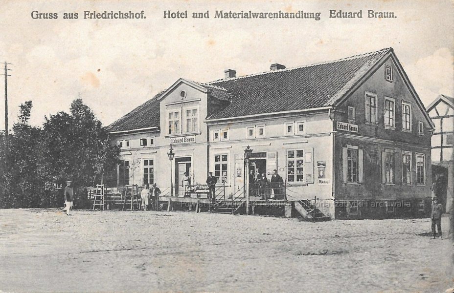 Eduard Braun interes w Rozogach prowadził już wcześniej, bo w 1897 roku szukał mówiącego po polsku ucznia chcącego przyjść do niego na naukę zawodu. E. Braun wraz z hotelem i restauracją prowadził sklep kolonialny. W styczniu 1914 roku podarował straży pożarnej dzwonek. Zmarł 2 marca 1917 roku. Na cmentarzu w Rozogach zachował się żeliwny krzyż z jego grobu Po pierwszej wojnie światowej jego gospoda przeszła na własność Gustava Konopackiego. Później prowadził ją Weigel. Po lewej stronie gospody znajdowała się poczta.