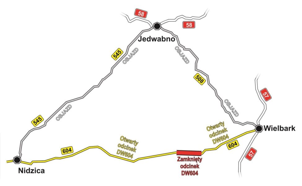 Jak informuje Zarząd Dróg Wojewódzkich w Olsztynie, dojazd do miejsca DOL będzie możliwy zarówno od strony Nidzicy, jak i Wielbarka. Przejazd przez sam odcinek lotniskowy zostanie jednak całkowicie zablokowany. Zalecany objazd prowadzi drogą wojewódzką nr 545 Nidzica–Jedwabno, a następnie drogą nr 508 Jedwabno–Wielbark.