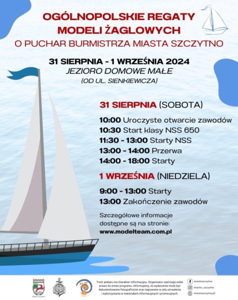 Szczytno po raz kolejny stanie się miejscem wyjątkowego wydarzenia dla miłośników żeglarstwa modelarskiego. Już w najbliższy weekend, 31 sierpnia i 1 września, na Jeziorze Domowym Małym odbędą się Ogólnopolskie Regaty Modeli Żaglowych o Puchar Burmistrza Miasta Szczytno.
