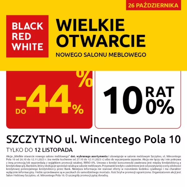 Oczywiście! Od 23 października nasz sklep będzie czasowo zamknięty, abyśmy mogli przygotować nowe meblowe aranżacje. Tym razem wymieniamy aż 85 procent asortymentu. Będziemy jedynym dystrybutorem w naszym powiecie światowej marki Black Red White. To będzie prawdziwa rewolucja! Producent stawia na jakość i niepowtarzalny dizajn. W czwartek, 26 października nasz salon będzie ponownie otwarty. Każdy, na własne oczy, będzie mógł zobaczyć, jak się zmieniliśmy. Zapraszam.