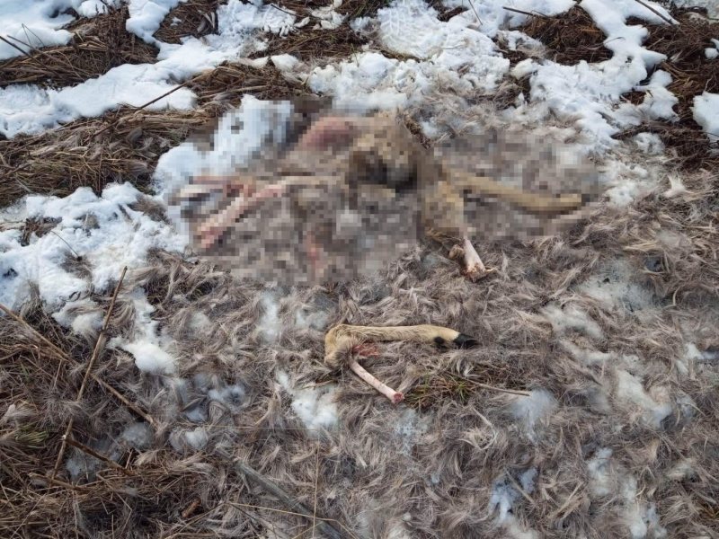 Szczątki zwierząt… tak jakby wilk żywi się mięsem to co ma jeść ? A to kawał sarniego truchła więc to chyba naturalne