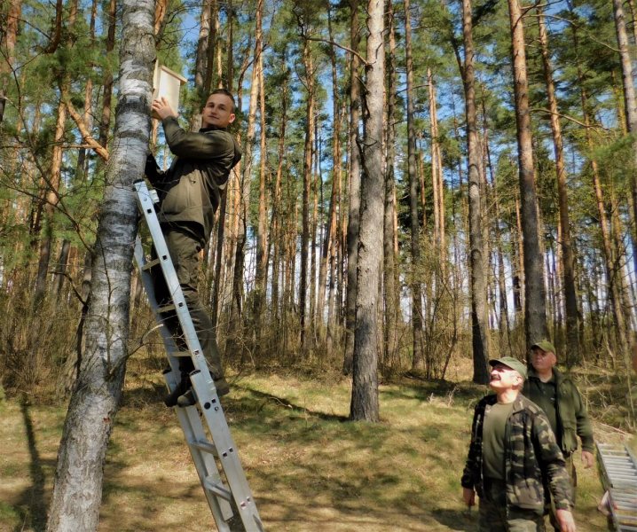 W środę, 27 kwietnia, myśliwi z koła łowieckiego „Ryś” Dźwierzuty zorganizowali wspólnie z leśnictwem Dźwierzuty i dyrekcją miejscowego Zespołu Szkolno–Przedszkolnego akcję wieszania budek lęgowych w okolicznych lasach i w lokalnym parku.