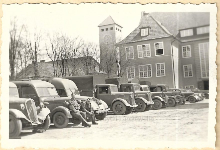Frontsammelstelle 14 zajmował się także logistyką, czyli zaopatrzeniem różnych jednostek. Właściciel albumu, Karl Hilbert(?), był kierowcą samochodu ciężarowego, a do jego zadań należało dowożenie zaopatrzenia. W Szczytnie jednostka kwaterowała w szkole miejskiej. Jej żołnierze mieli czas na odwiedzenie znajdującego się pod Olsztynkiem pomnika bitwy pod Tannenbergiem - Tannenberg Denkmal.