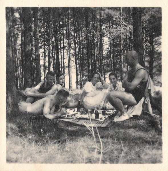 Od dawna, oglądając stare fotografie, moją uwagę przyciągały pikniki. Widywałem takie zdjęcia na przykład z okolic Wilna – przynajmniej te szczególnie utkwiły mi w pamięci. Wycieczki za miasto, na łono przyrody z kocem, koszykiem i jedzeniem, to była raczej domena ludzi wykształconych. Nie wiem, czy na Mazurach piknikowanie było popularne.