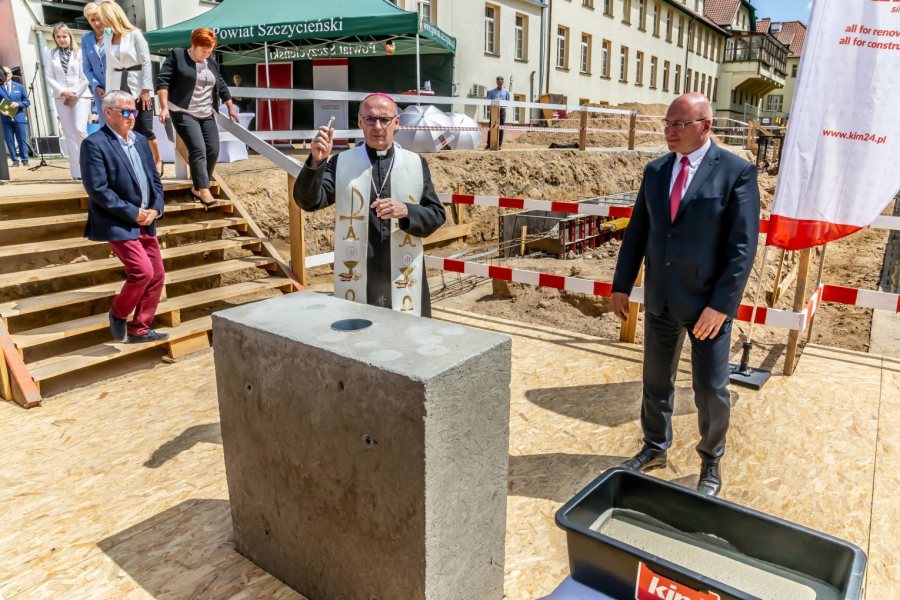 W poniedziałek uroczyście wmurowano kamień węgielny pod budowę nowego skrzydła szpitala w Szczytnie. Pod murami szpitala znajdzie się też kapsuła czasu, do której zapakowano między innymi numer „Tygodnika Szczytno”, monety, czy podpisany akt erekcyjny.