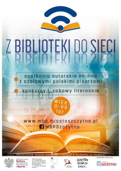 Spotkanie będzie transmitowane na Facebooku a poprowadzi je Katarzyna Ciak. Podczas spotkania odbędzie się również konkurs z nagrodami. Kilka dni przed spotkaniem, na profilu facebookowym biblioteki pojawi się zagadka literacka w ramach cyklu „Zgaduj z Bibliofacym”. Zachęcamy do śledzenia strony internetowej i profilu na Facebooku Miejskiej Biblioteki Publicznej w Szczytnie, aby uczestniczyć we wszystkich atrakcjach organizowanych w ramach projektu.