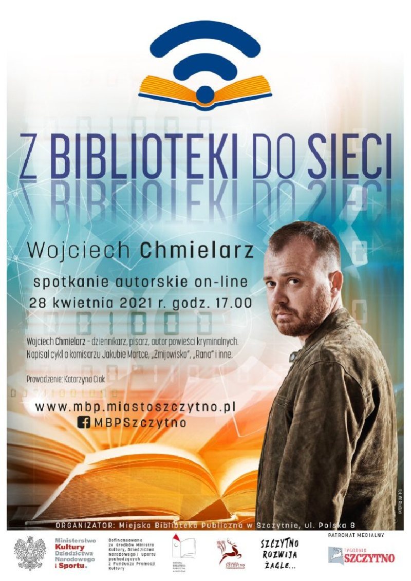 Już w środę 28 kwietnia o godz. 17.00 odbędzie się pierwsze spotkanie autorskie w ramach projektu „Z biblioteki do sieci” organizowane przez Miejską Bibliotekę Publiczną w Szczytnie. Na żywo połączy się z nami Wojciech Chmielarz - dziennikarz, pisarz, autor powieści kryminalnych.