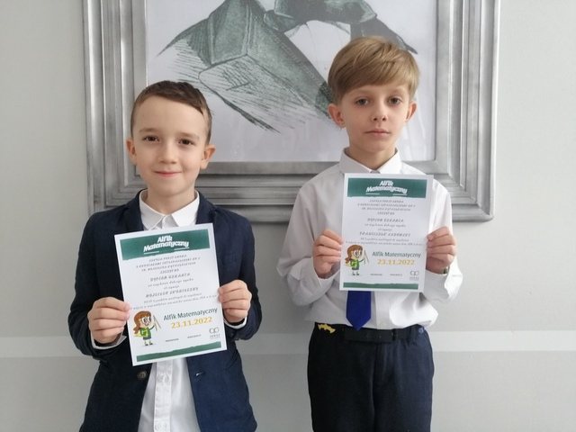 Wojciech Skonieczny i Franciszek Sadowski - uczniowie Szkoły Podstawowej z Oddziałami Integracyjnymi nr 2 w Szczytnie zostali wyróżnieni w XXVIII edycji Ogólnopolskiego Konkursu Alfik Matematyczny. Rywalizowali z ponad 44 tysiące uczestnikami z całego kraju.