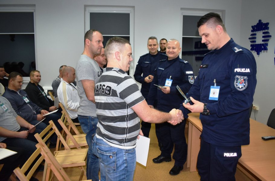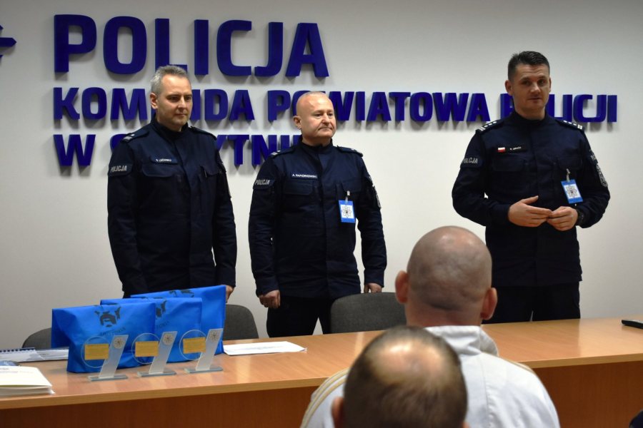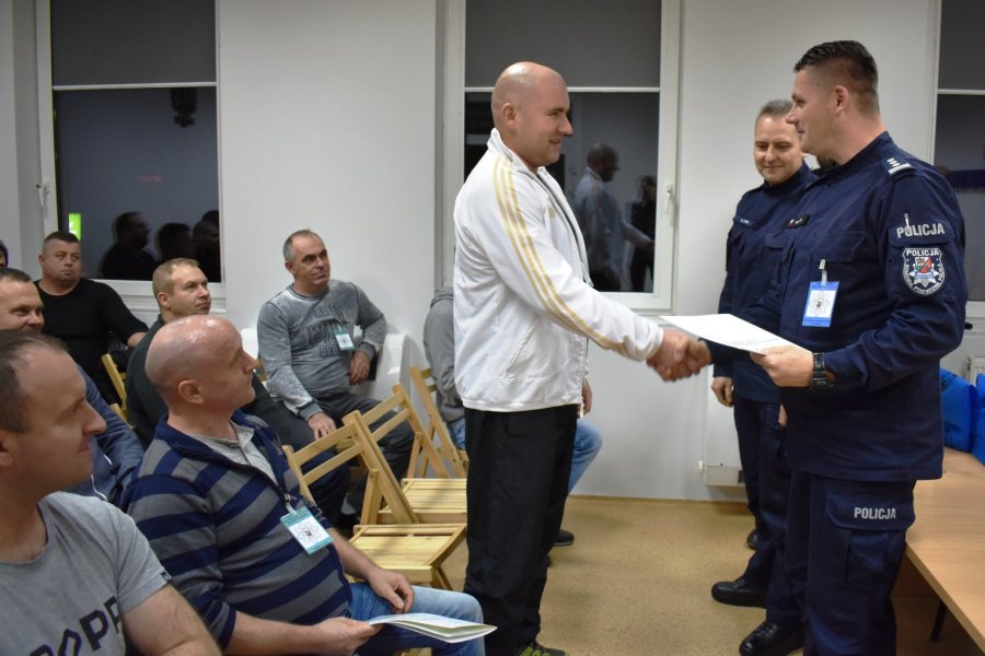 Na koniec ćwiczeń odbywających się pod kryptonimem „EGIDA-19” Komendant Powiatowy Policji w Szczytnie – insp. Radosław Drach, I z-ca Komendanta Powiatowego Policji w Szczytnie – podinsp. Arkadiusz Napiórkowski oraz z-ca Naczelnika Sztabu Komendy Wojewódzkiej Policji w Olsztynie – podinsp. Grzegorz Leżanko wręczyli certyfikaty i zaświadczenia na wszystkich uczestników oraz pamiątkowe statuetki za szczególne osiągnięcia w ćwiczeniach powołania rezerwy osobowej w jednostce zmilitaryzowanej Komendy Powiatowej Policji w Szczytnie najbardziej wyróżniającym się osobom.