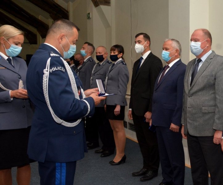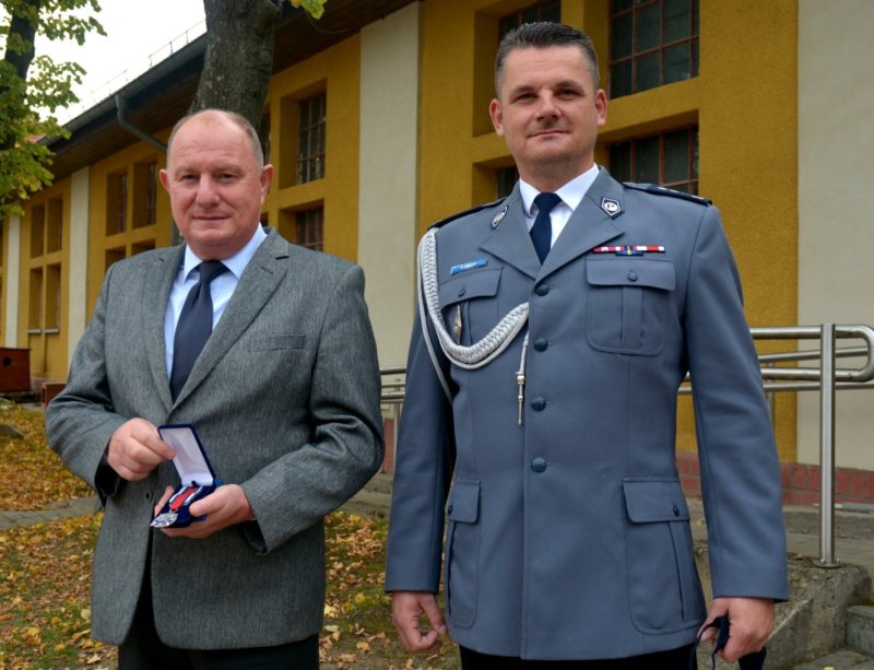 Nie był to jednak jedyny powód obecności szefa szczycieńskiej komendy podczas niedzielnej uroczystości. Po zakończonym ślubowaniu, Komendant Wojewódzki Policji w Olsztynie nadinsp. Tomasz Klimek odznaczył Medalem Srebrnym za Zasługi dla Policji, Wójta Gminy Szczytno Sławomira Wojciechowskiego. Komendant Powiatowy Policji w Szczytnie insp. Radosław Drach występując z wnioskiem o nadanie Wójtowi odznaczenia, m. in. w takich słowach uzasadnił swoją decyzję:
