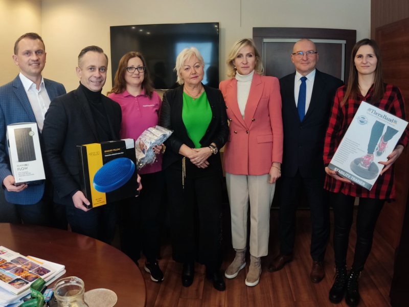 W czwartek, w ramach podsumowania odbyło się spotkanie pracowników stowarzyszenia, fizjoterapeutów, partnerów i koordynatorów podczas którego Urszula Pasławska, Posłanka na Sejm RP, Jarosław Matłach, Starosta Szczycieński, przedstawiciel Fabryki Klimatu, oraz koordynatorzy projektu - Rafał Kiersikowski i Tomasz Łachacz przekazali na ręce Mirosławy Duńczyk, dyrektor Centrum pomoce rehabilitacyjne, które trafią do fizjoterapeutów m.in. Anny Kossakowskiej.