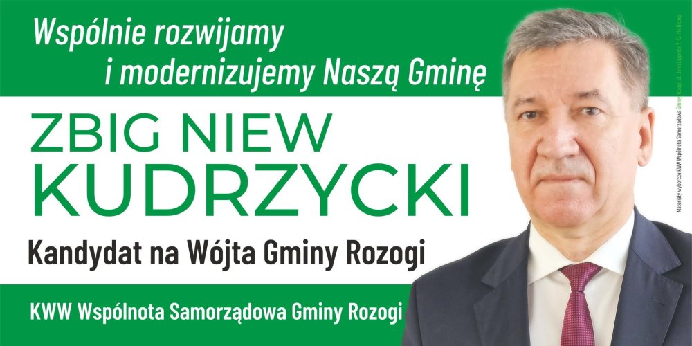Materiał wyborczy. KWW Wspólnota Samorządowa Gminy Rozogi powalczy o głosy mieszkańców w wyborach samorządowych, 7 kwietnia. - Gmina jest dla nas ważna. Naszym celem jest jej rozwój i stała modernizacja - mówi Zbigniew Kudrzycki, kandydat na wójta.