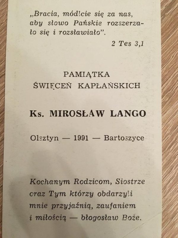 - Otrzymał je minutę wcześniej niż ja – wspomina z uśmiechem ksiądz Andrzej. - Był bardzo solidnym kapłanem. Nie robił niczego pochopnie, szybko. Miał swój styl, szedł do celu powoli, krok po kroku, rozsądnie. Ale jeśli obrał sobie jakiś cel, to skutecznie go zrealizował. Mirka poznałem w połowie września 1985 roku. Wówczas razem rozpoczynaliśmy naukę w seminarium w Dobrym Mieście. Był moim najbliższym kolegą.