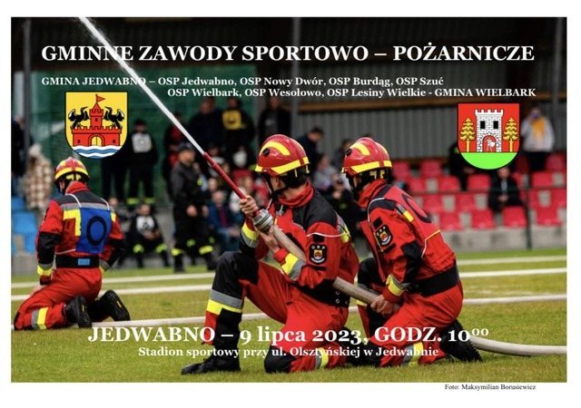 Zawody pożarnicze, w których udział wezmą drużyny OSP z Jedwabna, Nowego Dworu, Burdąga, Szuci, Wielbarka, Wesołowa i Lesin Wielkich.