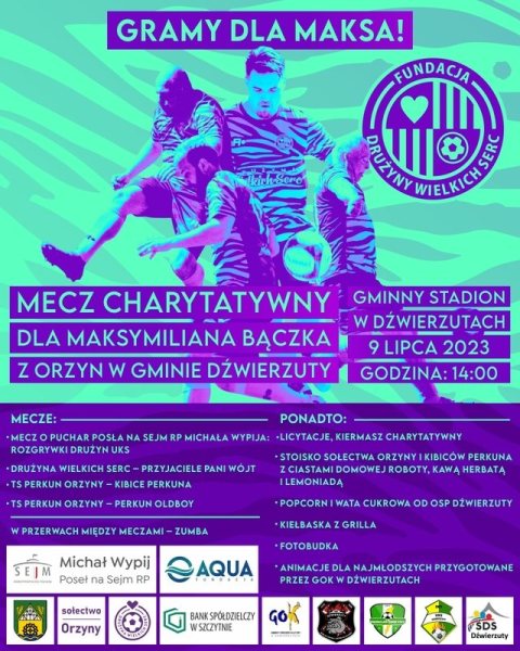 MECZ CHARYTATYWNY DLA MAKSYMILIANA BĄCZKA - gminny stadion w Dźwierzutach - godz. 14:00
