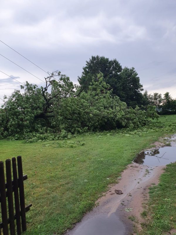 Mieszkańcy wsi pochowali się w domach, ale i one nie dawały stuprocentowej gwarancji bezpieczeństwa. Z jednego z budynków wiatr zerwał około 30 metrów kwadratowych dachu. Na sąsiadującej z domem posesji nawałnica powaliła potężny, ponad 400-letni jesion, który był pomnikiem przyrody. Drzewo na szczęście upadło na linie energetyczne, a nie na stoicy obok dom. Drzewa łamały się jak zapałki. Padały na drogi oraz na linie energetyczne. Na szczęście nikt nie ucierpiał. Po ustaniu nawałnicy pełne ręce roboty mieli strażacy. Mimo kilkudziesięciu, niemal jednoczesnych zgłoszeń, szybko uporali się z zagrożeniami.
