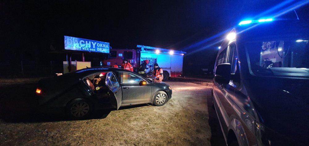 Do wypadku doszło we wtorek, 24 marca około godziny 20. Na miejscu pracują policjanci oraz strażacy. Ci ostatni musieli wyciąć z samochodu osobowego uwięzioną kobietę. Po jej uwolnieniu zajęli się nią ratownicy medyczni. Karetką została przewiedziona do szpitala w Szczytnie.
