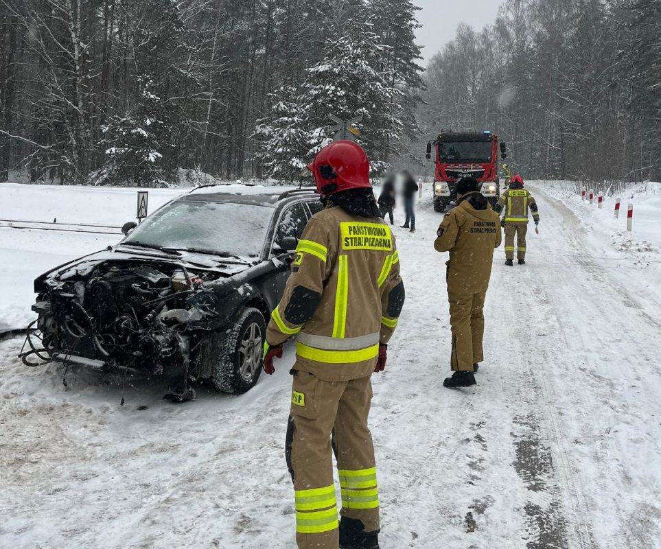 Chwila nieuwagi i fatalne warunki na drodze mogły doprowadzić do groźnie wyglądającego zderzenia na niestrzeżonym przejeździe kolejowym w okolicach Młyńska. Samochód osobowy uderzył w bok szynobusu relacji Ełk – Olsztyn Główny. Na szczęście nikt nie został ranny.