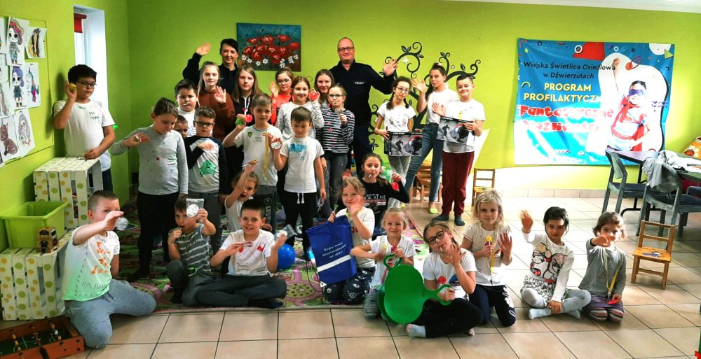 Szczycieńscy policjanci kontynuują cykl spotkań z dziećmi i młodzieżą poświęcony bezpieczeństwu w czasie zimowych ferii. Tym razem dzielnicowy asp. szt. Paweł Ślubowski wraz z sierż. Izabelą Cyganiuk spotkali się z dziećmi w Świetlicy Wiejskiej w Dźwierzutach.
