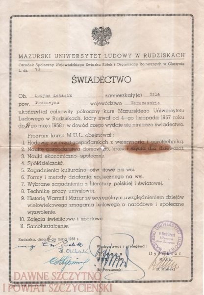 Pod koniec lat pięćdziesiątych ubiegłego wieku, jeden z członków rodziny uczył się w kierowanym przez Karola Małłka, Mazurskim Uniwersytecie Ludowym w Rudziskach Pasymskich.