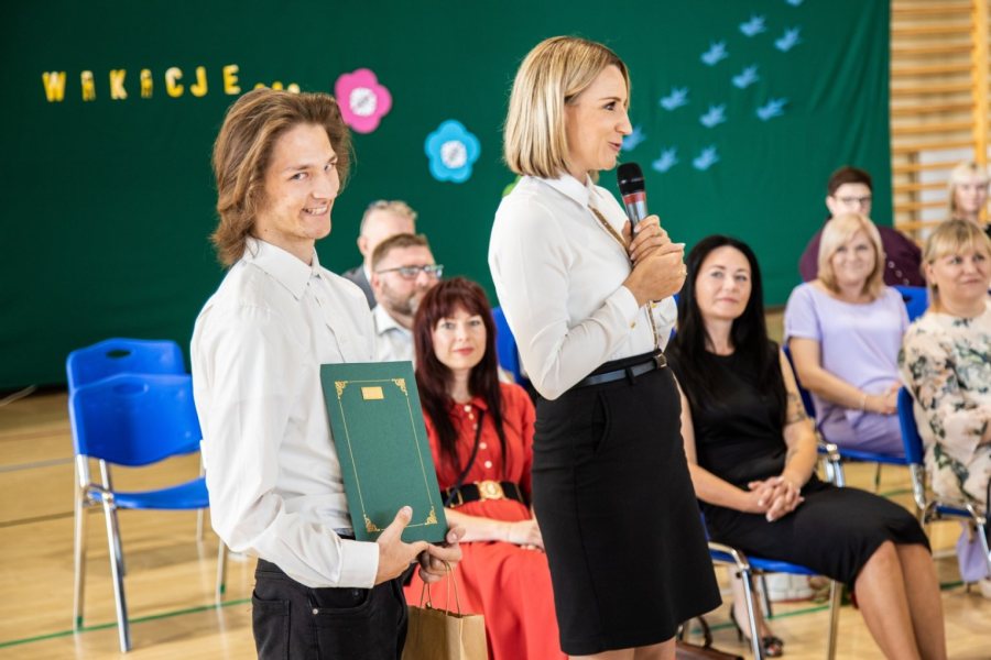 Wybitnych uczniów docenił Bank Spółdzielczy w Szczytnie. Nagrodę w postaci opaski sportowej Xaiomi otrzymał młody historyk Marcin Denkiewicz, laureat ogólnopolskiej olimpiady historycznej, beneficjent nagrody Olimpionika przyznawaną przez Stowarzyszenie Historyków Starożytności. Nagrodę wręczyła przedstawicielka Banku Monika Żyłajtys.