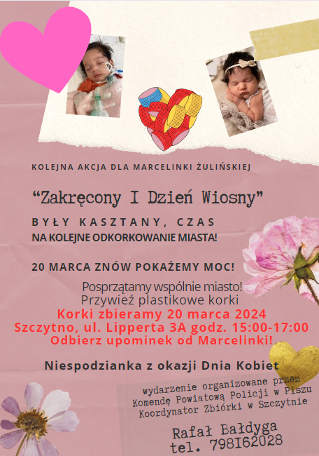 Dziękuję bardzo za udział w tej formie pomocy. Pomysłów nie brakuje. 20 marca to symboliczna data, która świetnie wpisuje się w kanon pomagania! Możemy zrobić coś dla Marcelinki ale i dla naszej planety. Dodatkowo, na wszystkie kobiety na miejscu zbiórki, które włączą się w akcję czekać będzie niespodzianka, bowiem w ten sposób chcemy uczcić Dzień Kobiet.