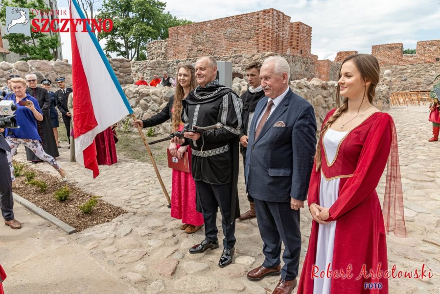 Burmistrz podziękował też Dariuszowi Bartonowi - wojewódzkiemu konserwatorowi zabytków, Wiesławowi Gołaszewskiemu - prezesowi firmy Rombud, która realizowała inwestycję oraz Gustawowi Brzezinowi – marszałkowi województwa. Otrzymali oni w podzięce symboliczne miecze.
