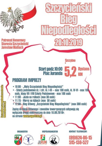 Jeszcze tylko dziś (do 10 października) można zapisać się na Szczycieński Bieg Niepodległości. Imprezę zaplanowano na 20 października. Cieszy się ona od lat dużą popularnością wśród mieszkańców powiatu. - Można rywalizować pieszo, na rolkach i „z kijkami” - zachęca do udziału Ewa Bogusz, dyrektor Powiatowego Centrum Sportu w Szczytnie.