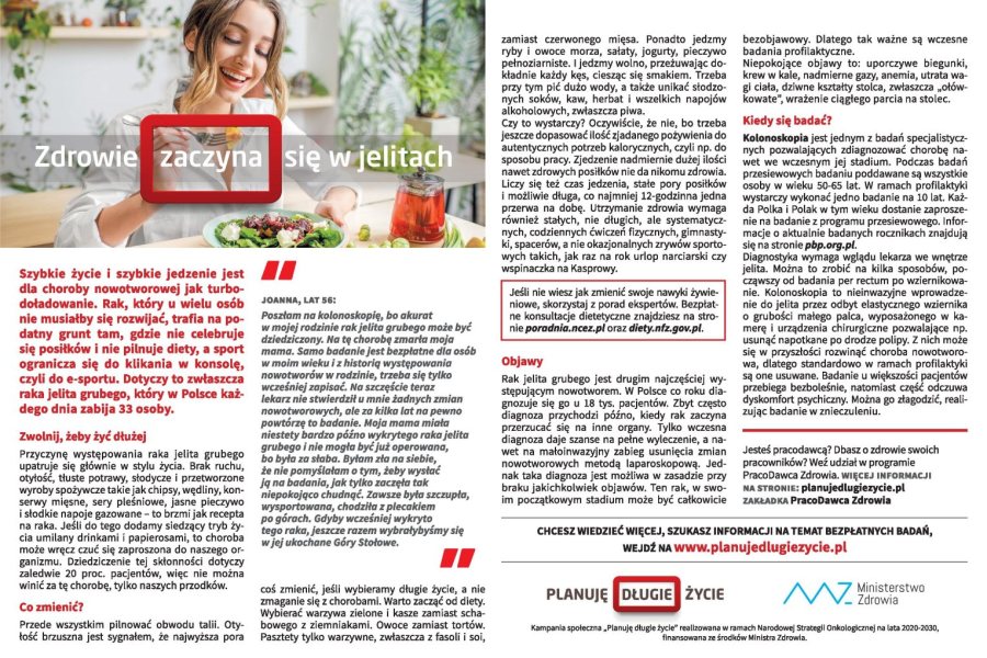 Kampania społeczna „Planuję długie życie” realizowana w ramach Narodowej Strategii Onkologicznej na lata 2020-2030, finansowana ze środków Ministra Zdrowia.