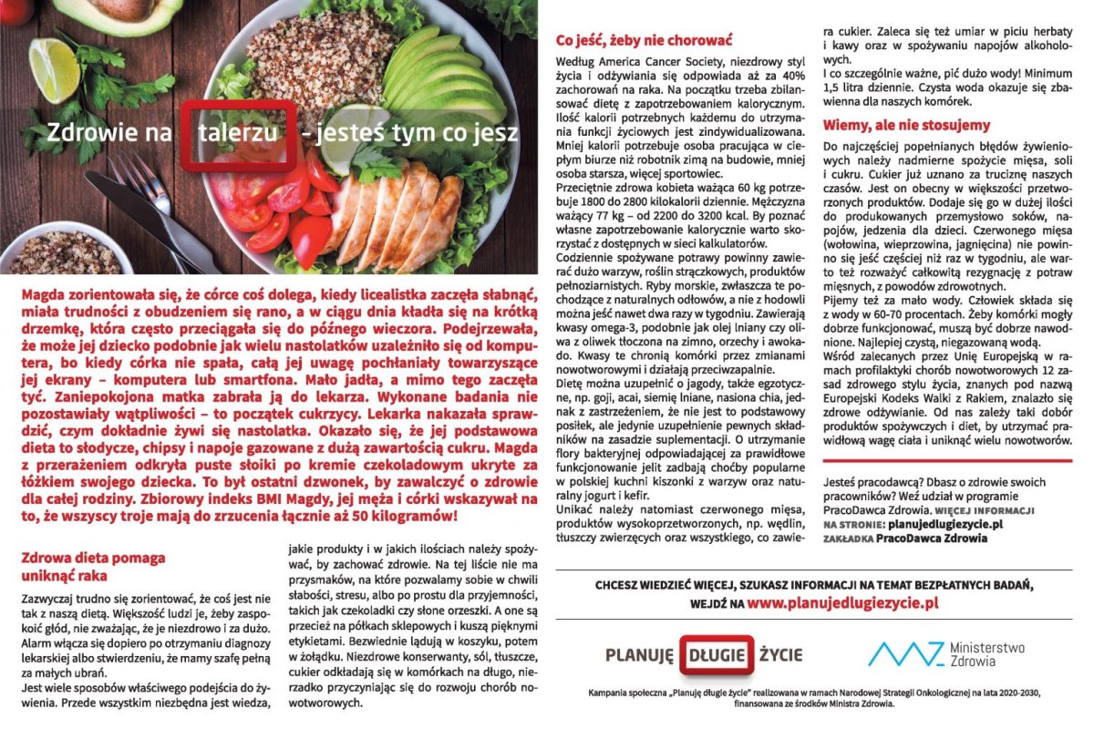 Kampania społeczna „Planuję długie życie” realizowana w ramach Narodowej Strategii Onkologicznej na lata 2020-2030, finansowana ze środków Ministra Zdrowia.