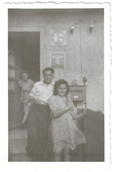 Fotografia wykonana przed pocztą w Lipowcu. Lata 30. XX wieku.