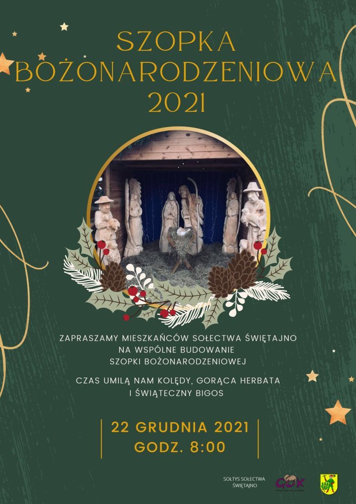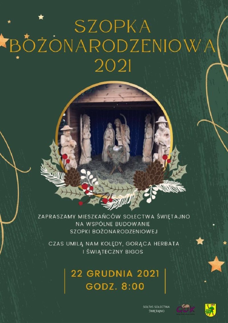 Gminny Ośrodek Kultury w Świętajnie zaprasza do wspólnego budowania szopki bożonarodzeniowej. Wydarzenie zaplanowano na 22 grudnia, na godz. 8. Szczegóły na plakacie.