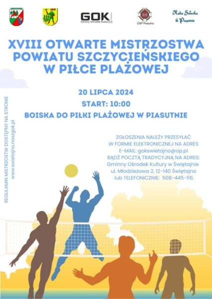 Już 20 lipca 2024 roku na boiskach do piłki plażowej w Piasutnie odbędą się XVIII Otwarte Mistrzostwa Powiatu Szczycieńskiego w Piłce Plażowej. Start o godzinie 10:00.
