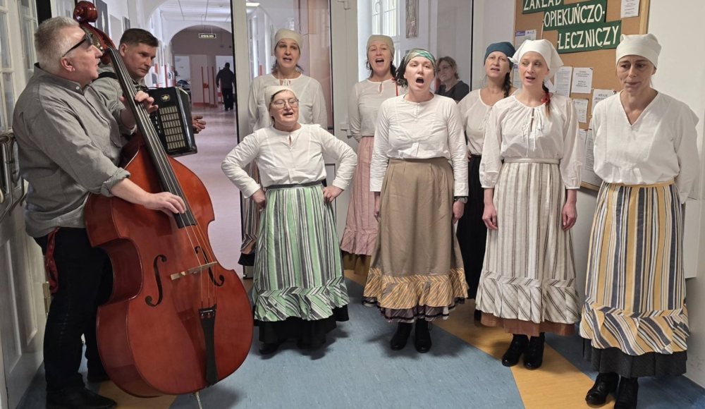 Muzycy zaprezentowali repertuar oparty na pieśniach regionalnych. Występ odbył się w placówce działającej przy Zespole Opieki Zdrowotnej w Szczytnie. Pacjenci słuchali, śpiewali, reagowali. Personel zatrzymał się na chwilę między obowiązkami.
