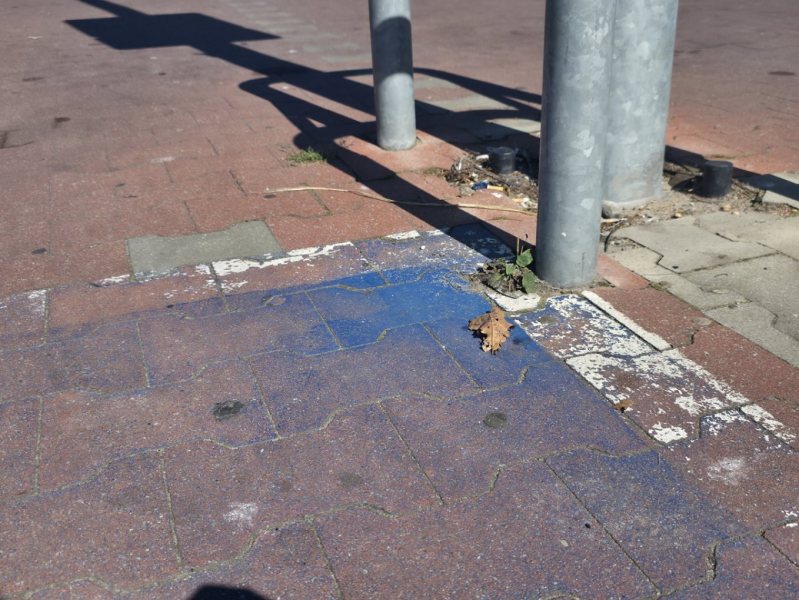 Poprawnie oznaczone stanowiska dla niepełnosprawnych wyraźnie się odróżniają od pozostałych. Są pomalowane na niebiesko, obwiedzione białą linią i liniami ukośnymi, skrzyżowanymi na środku oraz dodatkowo wymalowaną symboliczną postacią na wózku inwalidzkim. To tzw. koperty. Przy takich miejscach jest też oznakowanie pionowe. Na parkingu przy ul. Przemysłowej znak, co prawda, stoi, ale nie bardzo wiadomo, których miejsc dotyczy, a po niebieskiej farbie pozostał jedynie niewielki fragment w narożniku, niemal niewidoczny.