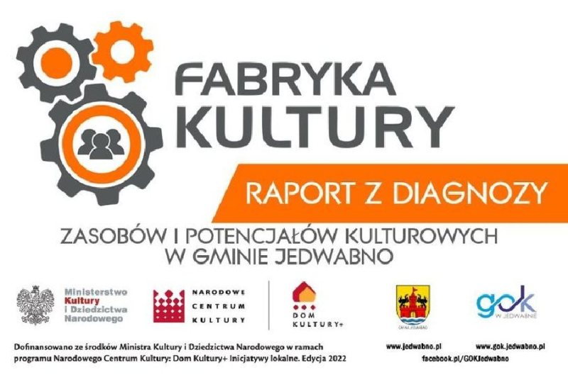 Raport z diagnozy zasobów i potencjałów Gminy Jedwabno powstał w ramach pierwszego etapu projektu pn. FABRYKA KULTURY, realizowanego w ramach Programu Dom Kultury + Inicjatywy Lokalne. Edycja 2022, którego organizatorem jest Narodowe Centrum Kultury.
