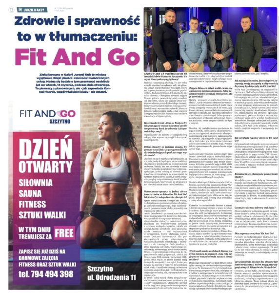 Owszem, ale nie tylko. Zachęcamy do śledzenia naszych mediów społecznościowych, abyście nie przegapili interesujących wydarzeń, które będą organizowane w najbliższym okresie. Teraz jednak zbliża się pierwszy dzień otwarty w Fit And Go. Zapraszamy do pierwszej wizyty już we wtorek, 14 stycznia.