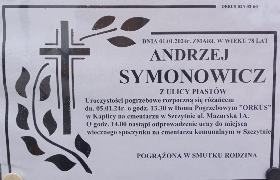 W poniedziałek, 1 stycznia zmarł znakomity artysta związany ze Szczytnem, wieloletni pracownik Muzeum Mazurskiego w Szczytnie — Oddziału Muzeum Warmii i Mazur — Andrzej Symonowicz. Miał 78 lat.