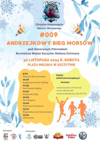 Szczytno wkracza w zimowy sezon z prawdziwym przytupem! Już w sobotę, 30 listopada na miejskiej plaży odbędzie się #009 Andrzejkowy Bieg Morsów, organizowany przez grupę Morsy Szczytno #RESET. To wydarzenie łączy aktywność fizyczną z odrobiną śmiałej zabawy w chłodnych wodach. Sponsorami tego wydarzenia są między innymi partnerzy "Tygodnika Szczytno" Bank Spółdzielczy w Szczytnie oraz Piekarnia Rogalik.
