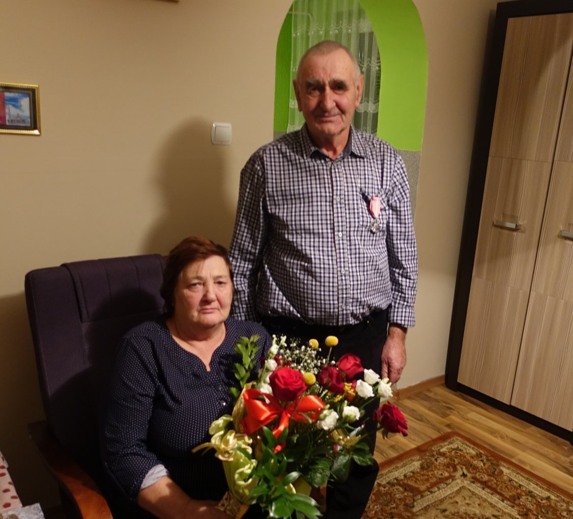 Nawet jeśli pandemiczne zagrożenia nie pozwalają na organizację uroczystości, nie oznacza to, że szczególne wydarzenia się nie odbywają. Dla tegorocznych jubilatów, obchodzących 50-lecie pożycia małżeńskiego takim wydarzeniem były zapewne odwiedziny rzadkich gości: wójta Sławomira Ambroziaka w towarzystwie przewodniczącej rady Elżbiety Brzóski i kierownik Urzędu Stanu Cywilnego Elżbiety Katarzyny Koperskiej.