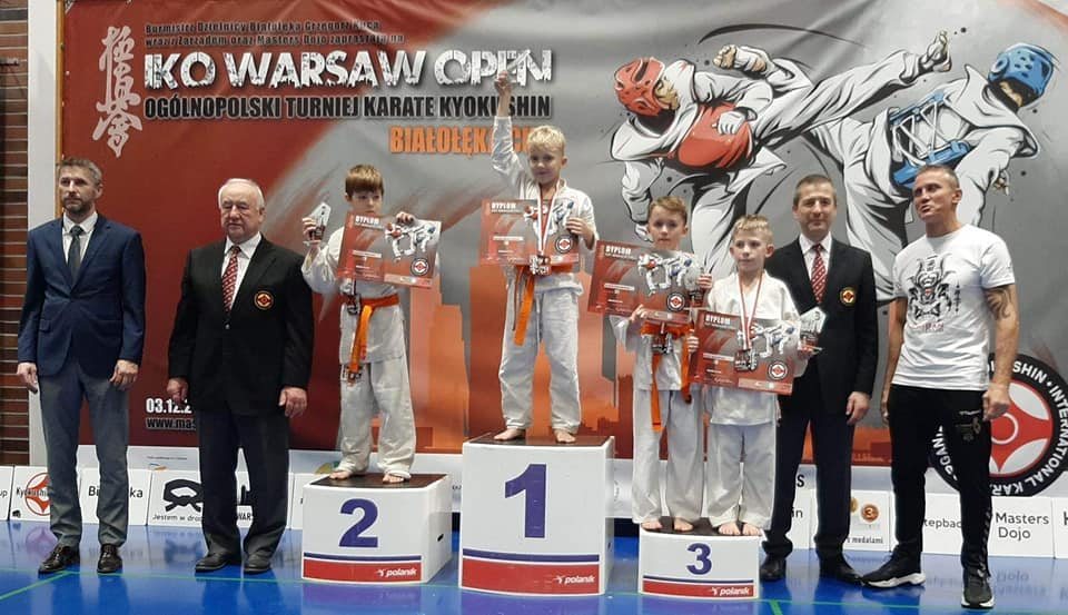 - Mieliśmy możliwość oglądania wielu ciekawych i zaciętych pojedynków w wykonaniu naszych zawodników – mówi sensei Dariusz Hrynowiecki. - Nie było łatwo dotrzeć do strefy medalowej. Dodatkowo cieszy fakt, że w zmaganiach mieli możliwość wziąć udział początkujący karatecy (dla wielu z nich był to pierwszy start w życiu). Nasi zawodnicy ze Szczytna przywieźli 7 medali. Złoto dla Szczytna zdobył Dominik Kępiński (sekcja Wielbark), na drugim stopniu podium uplasowali się Aleksander Tański (Wielbark), Antoni Bałdyga z brązowymi medalami wrócili Iga Długokęcka, Ignacy Alancewicz, Szymon Jóźwiak, Natan Żyliński.