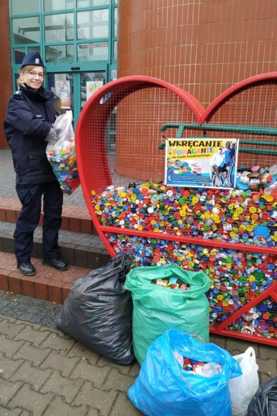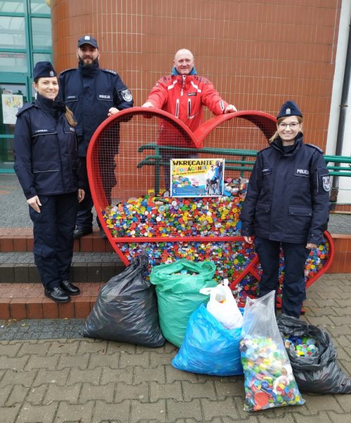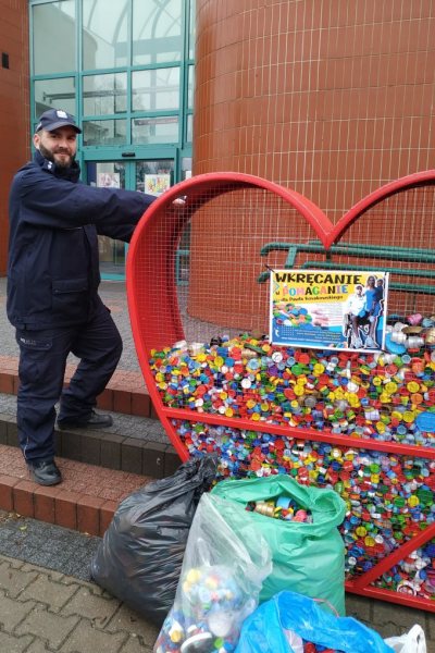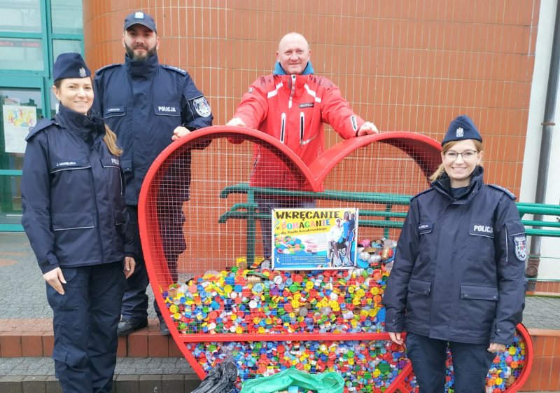 W środę, 4 grudnia szczycieńscy policjanci „wrzucili do serc” ustawionych przez Halą Wagnera pokaźną ilość zebranych w Komendzie Powiatowej Policji w Szczytnie nakrętek.