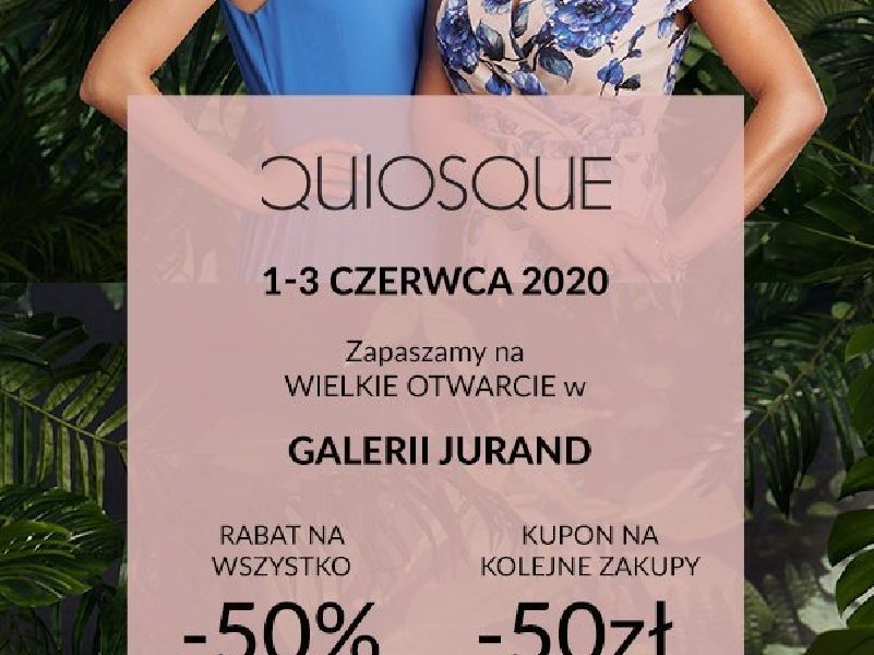 Kolejna marka otwiera swój salon w Galerii Jurand w Szczytnie. Tym razem jest to QUIOSQUE – polska marka, której oferta obejmuje odzież i akcesoria dla kobiet. Otwarcie salonu i...