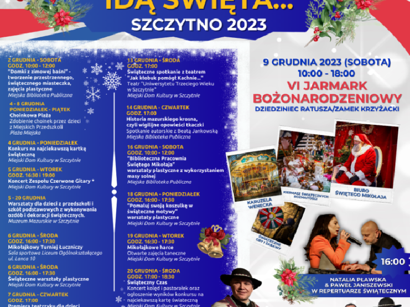Wyjątkowo zapowiada się grudzień w Szczytnie. To wszystko za sprawą kolejnej edycji cyklu „Idą święta... Szczytno 2023”. Bez wątpienia wydarzenia, które zaplanował miejski...
